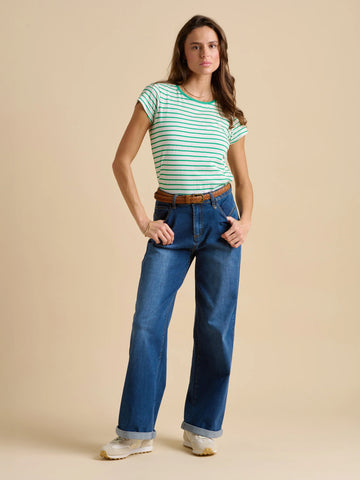 This white and green striped top is your go-to for effortless summer style. Made from lightweight, breathable fabric, it keeps you cool and comfortable all season long. With its fitted shape, it’s perfect for pairing with shorts, skirts, or jeans for a laid-back, sunny-day look.